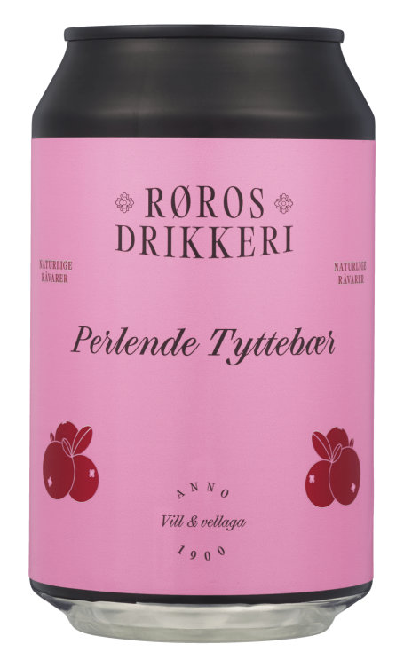 Perlende Tyttebær 0,33l boks Røros Mineralvann